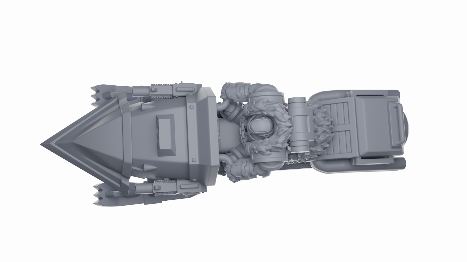 Often fighting in cold and icy mountain ranges, Space Bears need a light recon vehicle that can travel at speeds their bear mounts cannot. For this they use snow mobiles. Half tracked, and able to be made with ski struts or a front tire, Snowmobiles are your go to for light, fast objective takers and flank harassers.